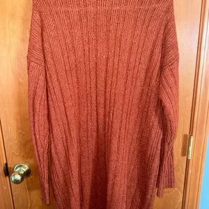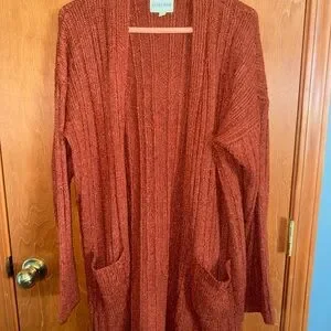 Terra Cotta Knit Cardigan Open Front Cozy Lightweight Sweater Size M Fall