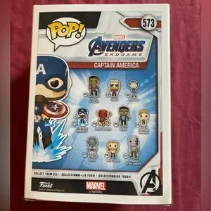 Official Funko Pop! Captain America from Avengers Endgame. Features classic shield and star chest detail. Window box display-ready collectible. Great addition to any Marvel collection.