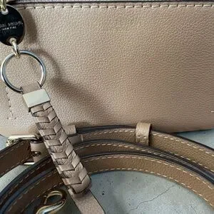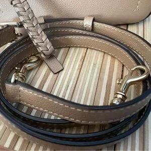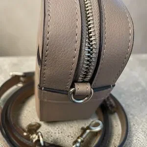 Henri Bendel Pebbled Leather Camera Crossbody Bag Beige Neutral Gold Hardware
