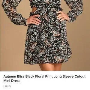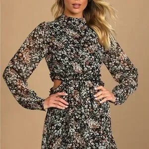 Lulu's Black Floral Long Sleeve Cutout Midi Dress