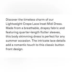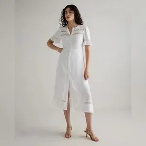 QUINCE NWT Lightweight Crepe Lace Inset Midi Dress -white -large