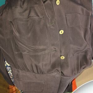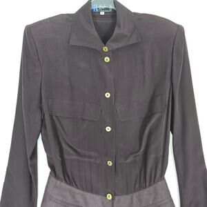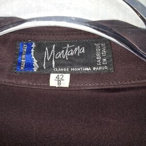 Vintage 1980's Claude Montana Blazer Blouse Brown Silk Raw Silk Button Front 8