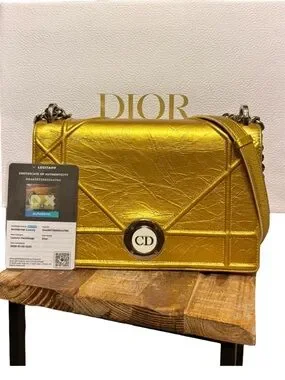 Christian Dior Diorama Flap Bag Metallic Gold Crinkled Lambskin + COA & Box