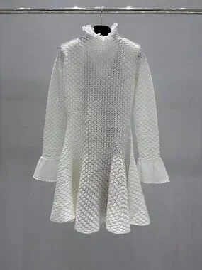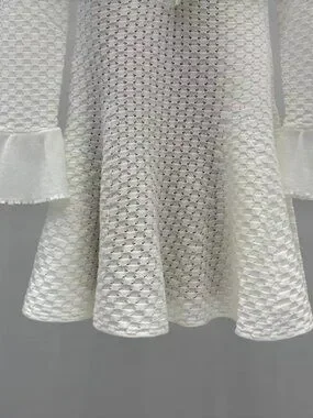 Self-Portrait White Textured Knit Ruffle Collar Mini Dress