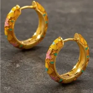 Non tarnish flower huggie hoop earrings