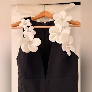 Refined and romantic, the Estelle Mini Dress features a flattering V-neckline and delicate floral appliqué that adds an elevated touch. The perfect balance of elegance and femininity.