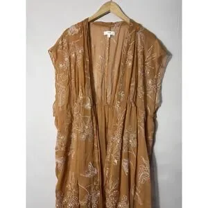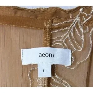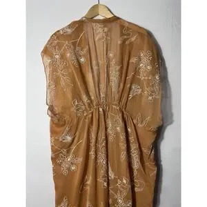 Aeom Coatigan Womens Large Brown Embroidered Sheer Kimono Butterfly Floral