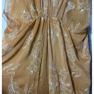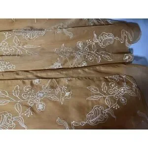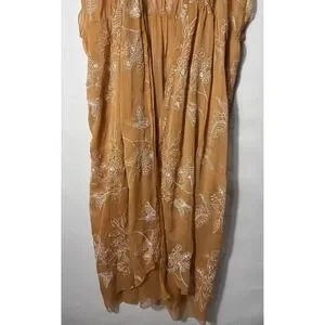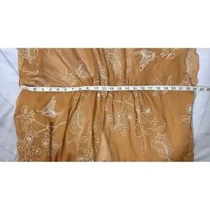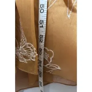 Color: Warm brown sheer chiffon with white embroidered floral and butterfly pattern.