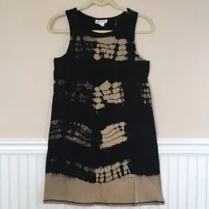 Darling black and mocha sleeveless tie dye skater dress. Content: 60% polyester/35% rayon/5% spandex.