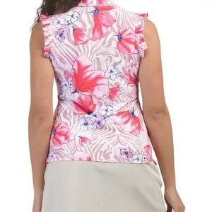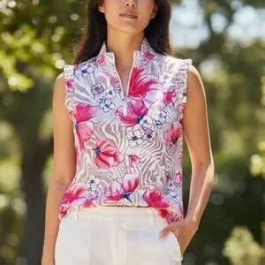 NWT G Lifestyle Pleated Sleeveless Golf Active Tennis Top. Floral design. Color: Beige Zebra. Perfect for casual outings. UPF 50 Sun Protection, moisture wicking, fast drying, antimicrobial technology. Nylon/Polyurethane Blend. Size Large (12-14), Chest 20” flat lay. Price Firm!