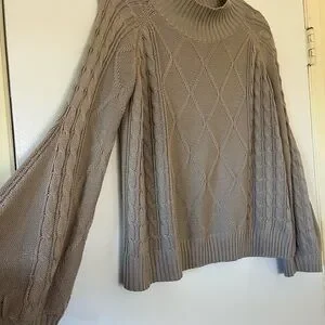 Stay cozy and stylish with this elegant mockneck cable knit sweater. Perfect for any occasion, this tan sweater adds a touch of warmth to your wardrobe.