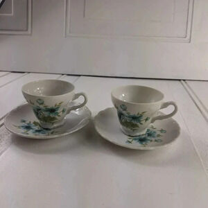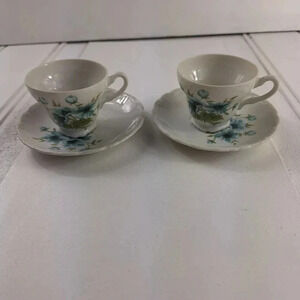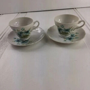 Pamela Japan Saucers and Tea Cups Set Of 2 Blue & White with Flower Design. Pre- Owned in Great Condition. No Chips or Cracks. Please See Pictures To See exact Cups and Saucers. Please Reach Out With Any Questions! Have a Fabulous Day!