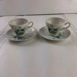 Pamela Japan Saucers and Tea Cups Set Of 2 Blue & White with Flower Design