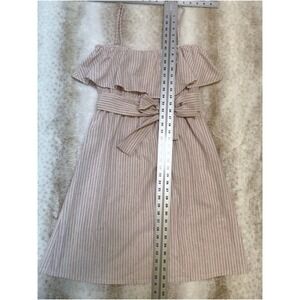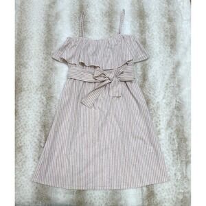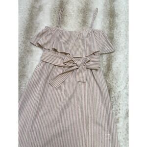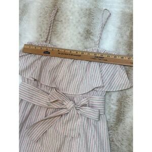 Pleione Striped Sundress Womens M Pink Tan Ruffle Tie Waist Spring Summer Beach