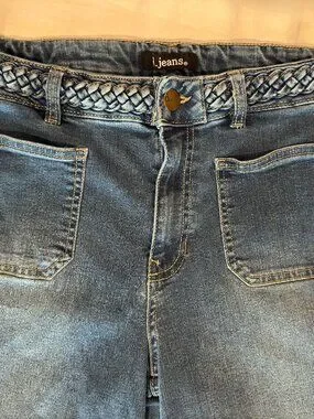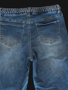 d.jeans Size 10 Trouser Jeans Braided Waistband Dark Wash Stretch Straight Leg