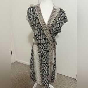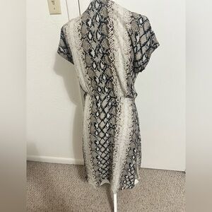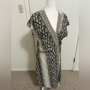 JOIE BETHWYN SNAKESKIN PRINT SHORT SLEEVE V-NECK WRAP DRESS PORCELA Sz L