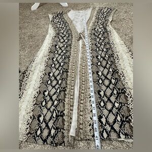 In excellent used condition. Minor flaw: a black marker on the tag. Can be worn as a nursing dress or a wrap dress. Animal print design. Made of soft material.