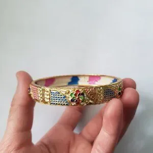 VTG Colourful Floral Gold Toned Bangle Bracelet