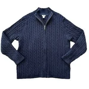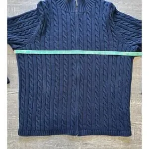 LL Bean Sweater Full Zip Men’s Sz 1X Holiday Cable Knit Blue 100% Cotton 251834