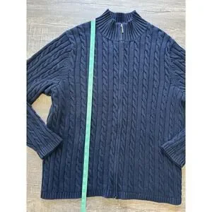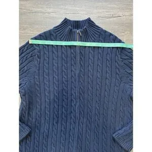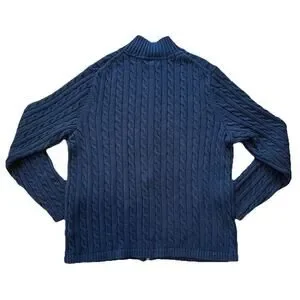 The LL Bean Sweater is a men's size 1X holiday cable knit sweater in blue, made of 100% cotton. It features a full zipper design, long sleeves, and is suitable for travel and casual occasions. The sweater is designed in a classic cable-knit style, perfect for the winter, fall, and spring seasons. With its high-quality material and brand reputation, this sweater is a stylish and comfortable choice for the upcoming holidays.