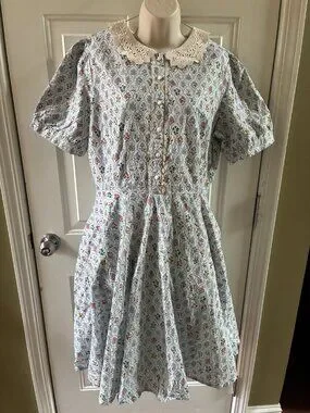 Ivy City Co Mae Dress Floral Lace Collar Puff Sleeve Cottagecore Size 14