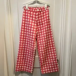 Women's Pink Gingham Wide-Leg Pants SZ Blockprint
