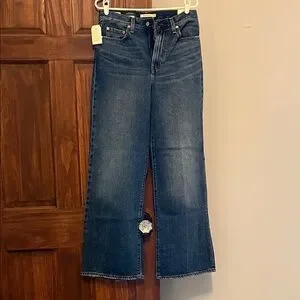 Runs large; please size down, Features an extra-high rise, a wide leg, and an extra-long inseam. Non-stretch denim will soften and give with regular wear.