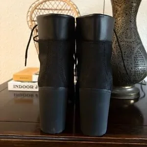 Pre LOVED Timberland Earthkeepers Glancy heeled ankle boots with a lace-up front. Chunky block heel and lug sole for traction. Soles are in excellent condition. Sleek silhouette suitable for day or night outfits. Waterproof. Fantastic condition compared to other pre owned boots on Poshmark of this same style.
