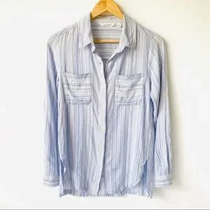 Super cute! Great for Summer. Perfect to throw on on a windy beach afternoon🌴 87% Viscose 13% Cotton. Approx measurements pit-pit= 18”, Length front 24.5”- 25.5” back. Buttons to roll sleeves