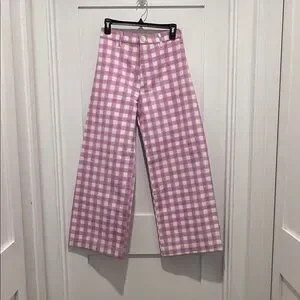 Women's lavender Gingham Wide-Leg Pants SZ Blockprint M