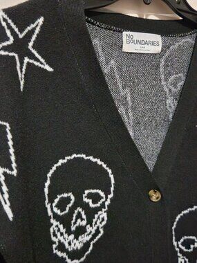 No Boundaries Black Sweater Cardigan Skulls and Stars Sz S