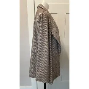 CHICOS Womens Open CARDIGAN Long Sleeve TAUPE White STRIPE Size 2 (L/12)