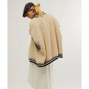 FREE PEOPLE Pep Rally Teddy Poncho Jacket Oversized Fur Sherpa Sleeveless Cream