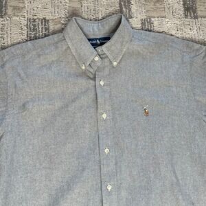 Ralph Lauren Yarmouth Oxford Button Down Shirt Men Gray Long Sleeve 16 34/35
