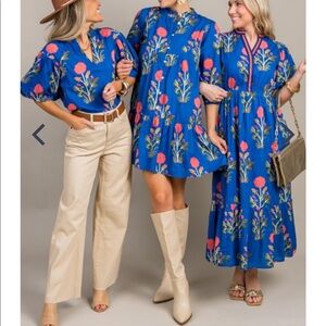 THML 100% cotton blue dress with floral print.
