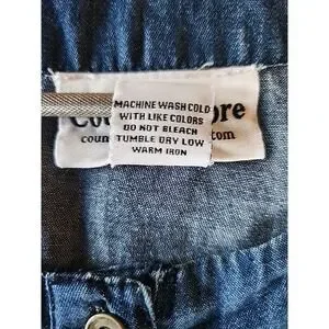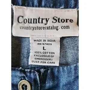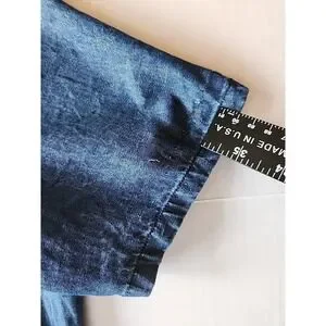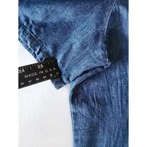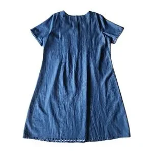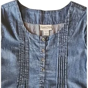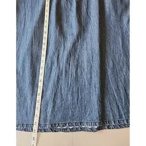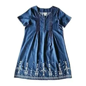Womens Denim Midi Shirt Dress L Embroidered Pintuck Cottage Coastal Granny Chic