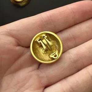 CHANEL Gold-Tone CC Dome Earrings Vintage