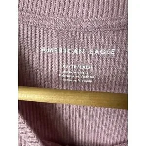 American Eagle Dusty Rose Pink Ribbed Henley Cropped T Shirt Lettuce Hem XS