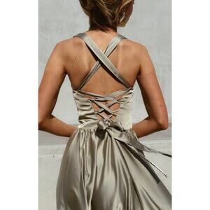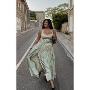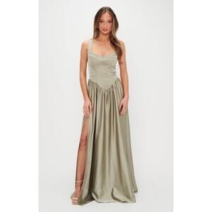 Show Me Your Mumu Abigail Maxi Dress Moss Green Luxe Satin XL NWT