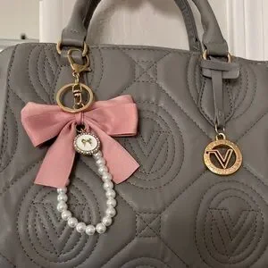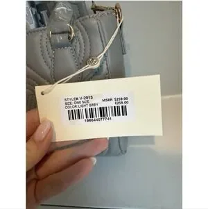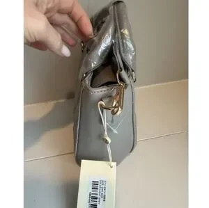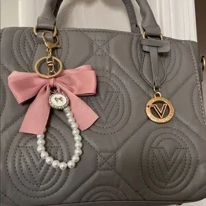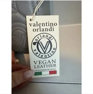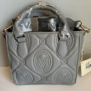 Compact Valentino Orlandi satchel in gray leather. Quilted circular logo stitching covers the exterior. Top handles and a removable logo webbing strap. Gold-tone hardware accents. Clean, structured silhouette for everyday use. EUC Not NWT as depicted in photos. No Tags!