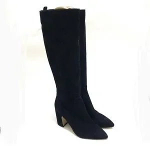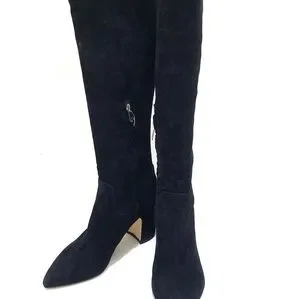 Sam Edelman Black Suede Knee-High Block Heel Boots