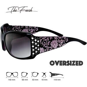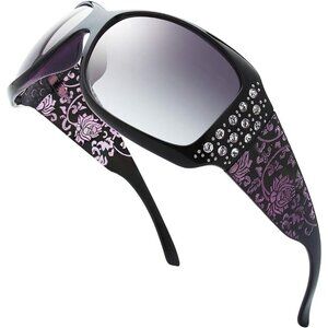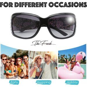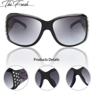 Features: Eye-catching rhinestone frame with a subtle cat-eye shape, colored grey gradient lenses that add a trendy vibe. UV400 protection blocks 100% of UVA and UVB rays, keeping your eyes safe while looking super chic.