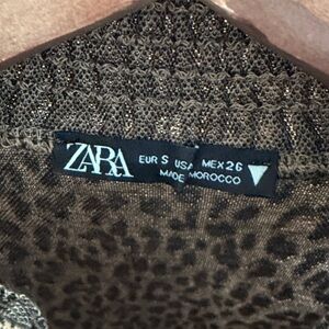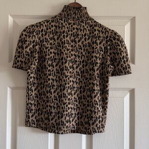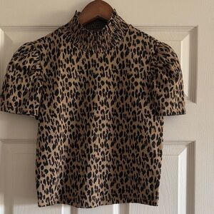 Zara Leopard Smocked Mock Neck Puff Sleeve Top - Tan & Black