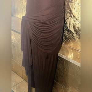 Ronny Kobo- Crystal Dress in Chocolate Brown Ruched Side-Slit Size Medium