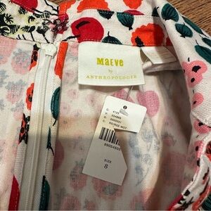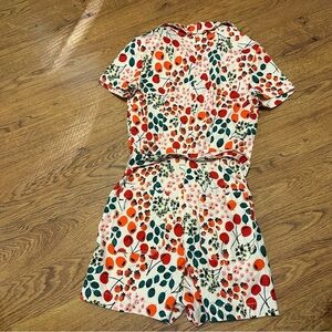 Anthropologie Maeve Red and Green Floral romper with Flutter Sleeves size 8