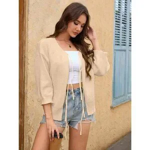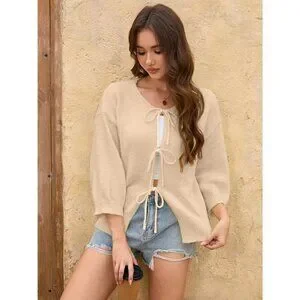 Trendy Cardigan: The Fluffy sleeves and Bow Design Design Adds A Touch Of Texture, While The Oversized Puff Sleeves Give It A Modern Twist. The Lace-Up Closure Allow