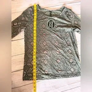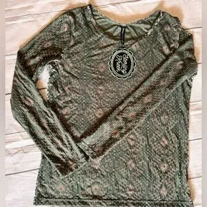 Long Sleeve Aztec-Print Crewneck Top - Sage & Silver Medium