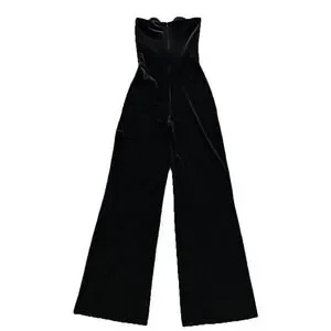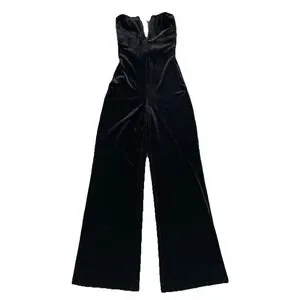 Good American Jumpsuit Size 1 Small Black Strapless Velvet V Neck