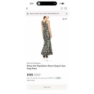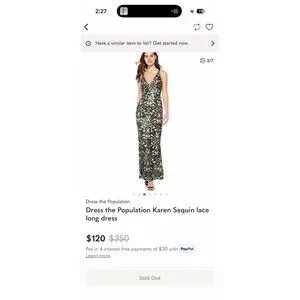 The Dress the Population Karen Dress is a stunning formal dress in a size large with a beautiful green color. The lace mesh fabric with sequin accents adds a touch of elegance to this maxi, fit & flare, and ball gown style dress. Perfect for a special occasion, this long dress exudes sophistication and glamour, making it a standout choice for any woman looking to make a statement at her next event.