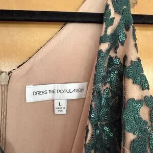 Dress the Population Karen Dress Green Lace Mesh Sequin Formal Prom Size Large